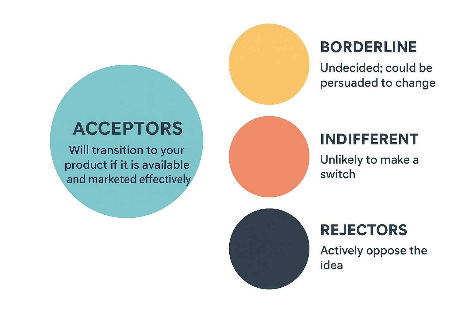 When you know the Acceptor segment, you won't waste time and money on selling to prospects that don't want your product.